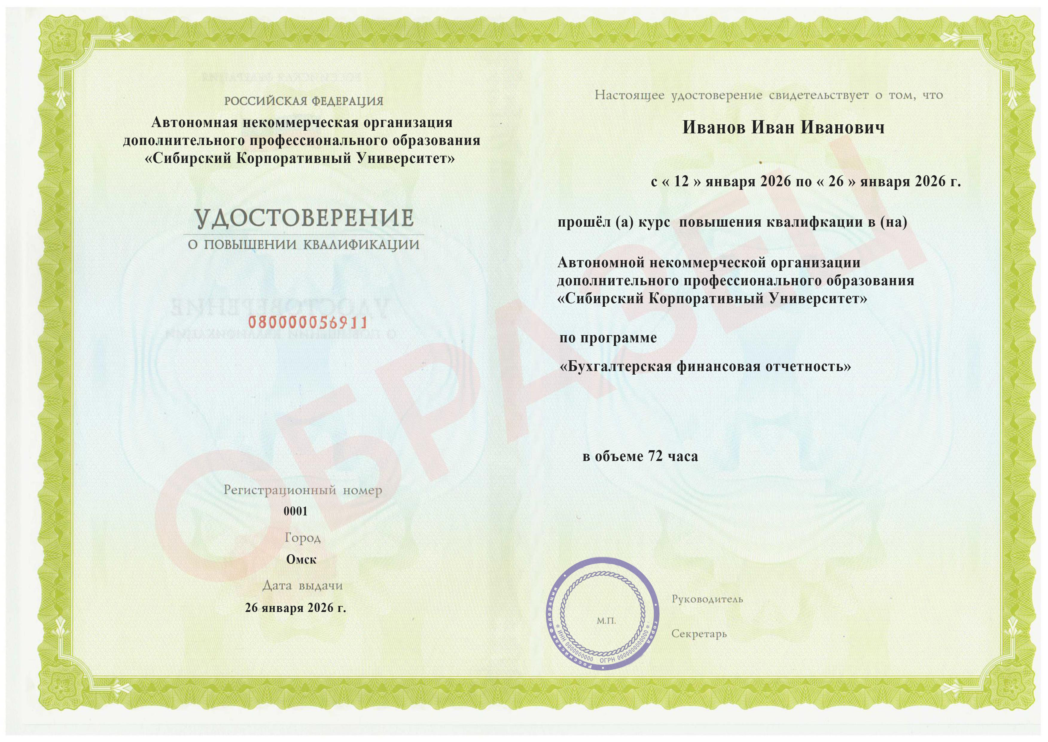 бессрочно на всей территории РФ Пройдя аттестацию, Вы получаете Удостоверение о повышении квалификации Сибирского Корпоративного Университета