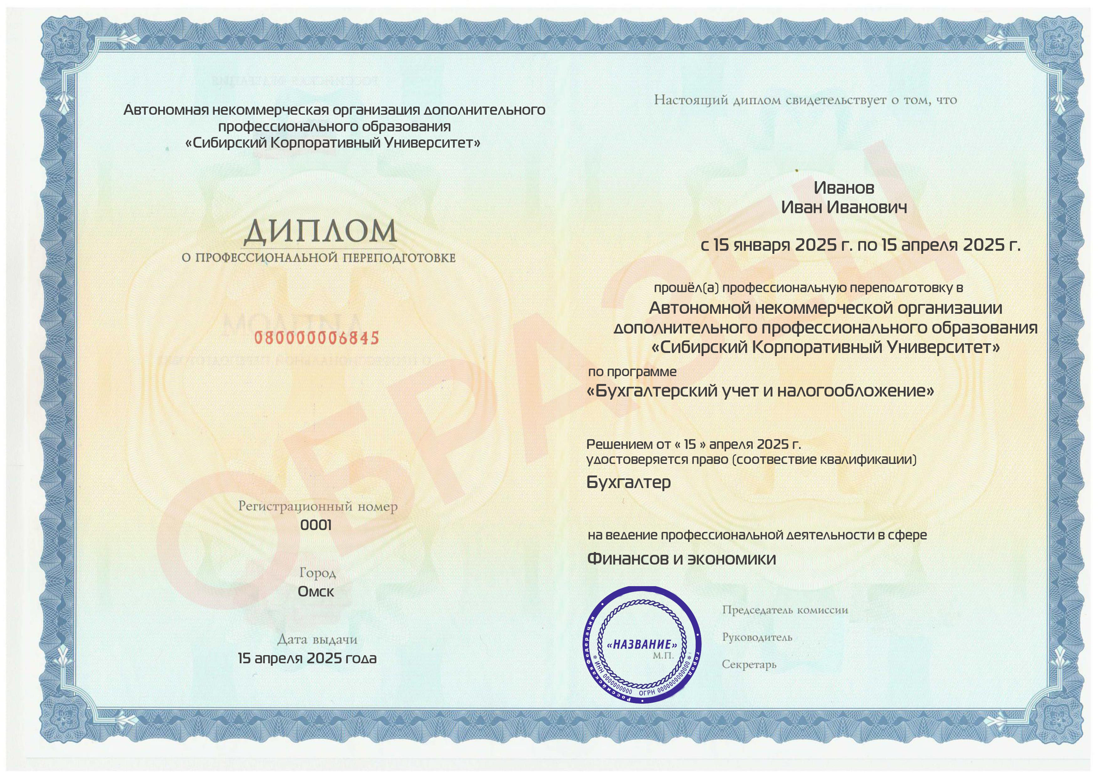 бессрочно на всей территории РФ Пройдя аттестацию, Вы получаете диплом о профессиональной переподготовке Сибирского Корпоративного Университета