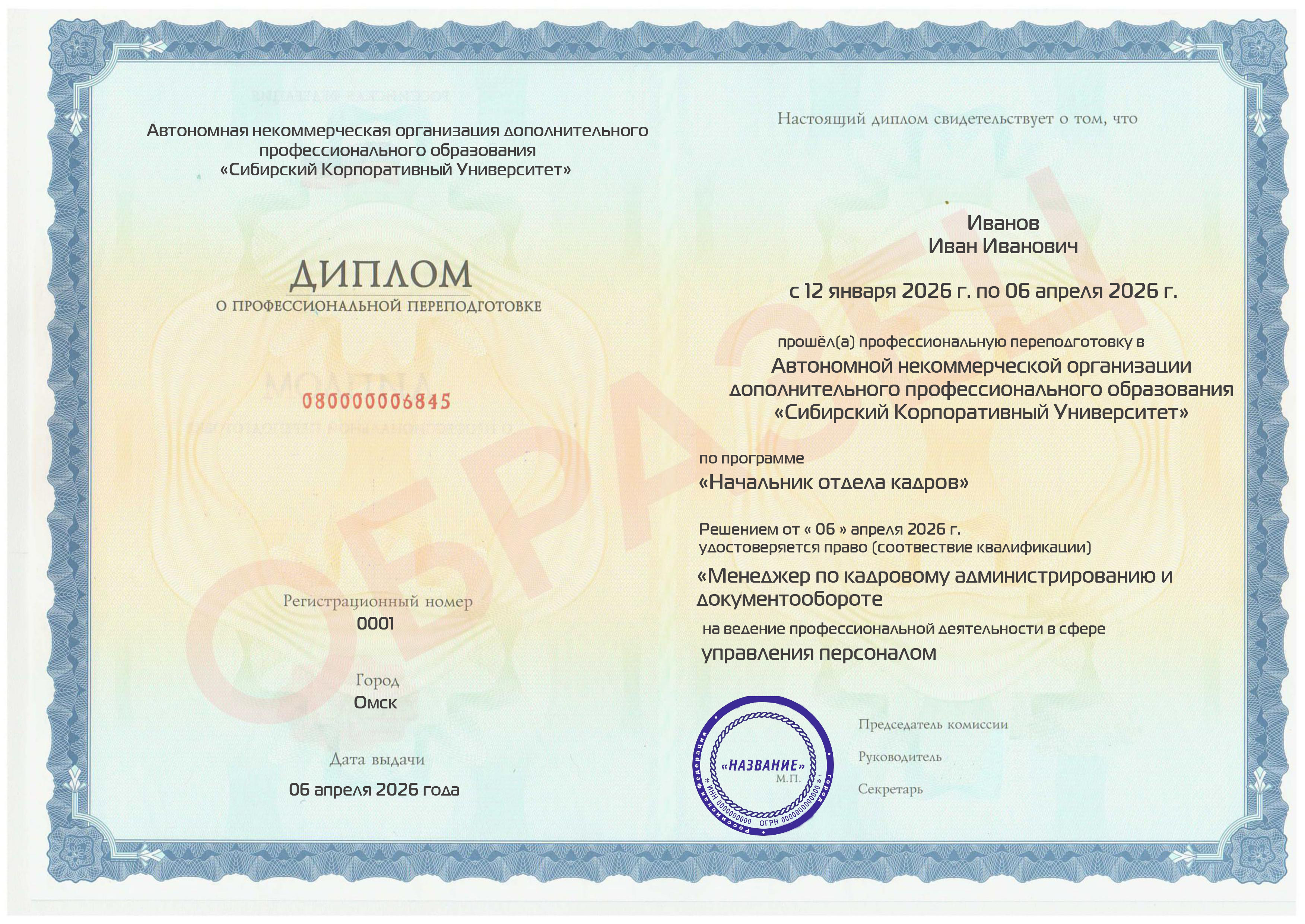 - Дополнительное профессиональное образование — программы переподготовки в области управления персоналом